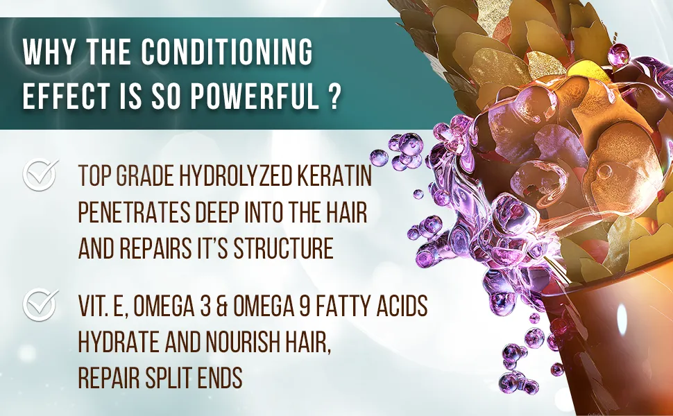 ✅ Keratin-Enriched Formula – Repairs damaged cuticles and restores hair strength.